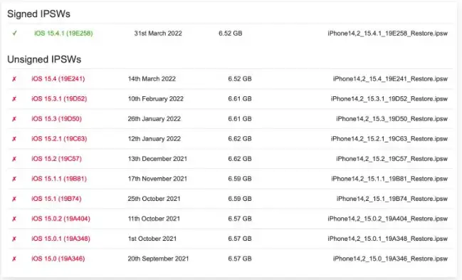 过去还有过几次是比较特别的状况,就是iOS 旧版本的认证通道关闭后,苹果发现新版本有些严重的状况,在还没有推出更新的版本修补以前,Apple 会开放旧版本的降级通道,让使用者可以针对iOS 降版本,这时也是另外一个降级的好时机。
